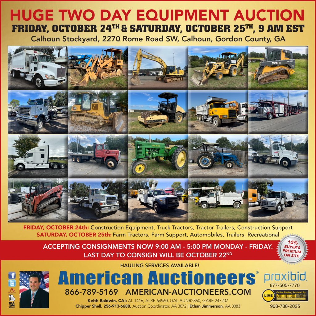 Friday, October 24, 9 AM – Construction Equipment, Truck Tractors, Tractor Trailers, Construction Support